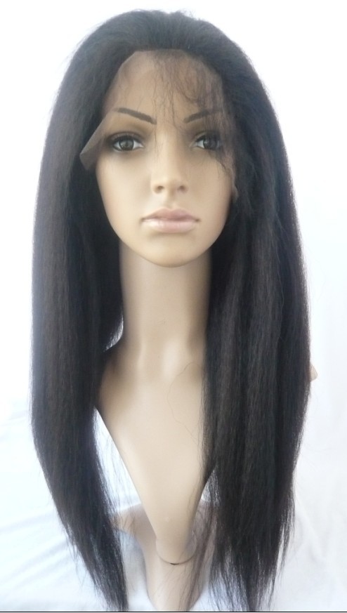 Perruque ultra fine, faite à la main sur une tulle où sont implantés au crochet des cheveux vierges. Elle est parfaitement indétectable, et sa particularité réside dans la visibilité du cuir chevelu : là où une perruque ordinaire ne laisse rien entrevoir, la full lace wig donne l’illusion que les cheveux prennent naissance sur le cuir chevelu, d’où son énorme succès.